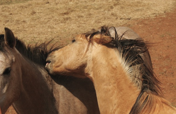 In domestication, horses don’t get to choose their herd mates. Usually humans make that choice, organizing herds according to their own convenience, often without regard to the horse’s natural behavior. Consequently, the horses may not like each other, sometimes bullies are in charge and/or the hierarchy can be unstable. Often, adding or subtracting one individual can change the herd dynamic in surprising ways, because there were false or forced relationships to begin with.